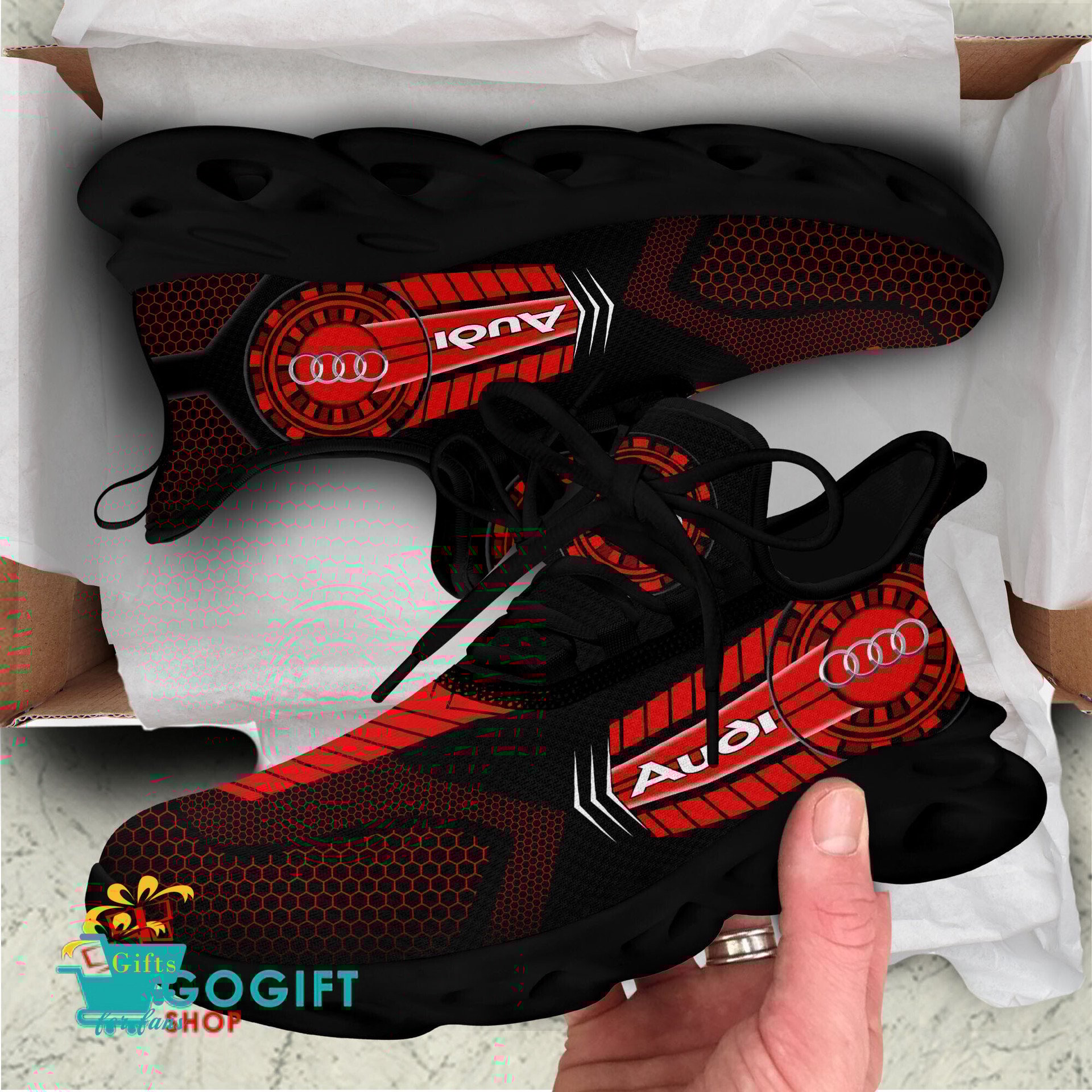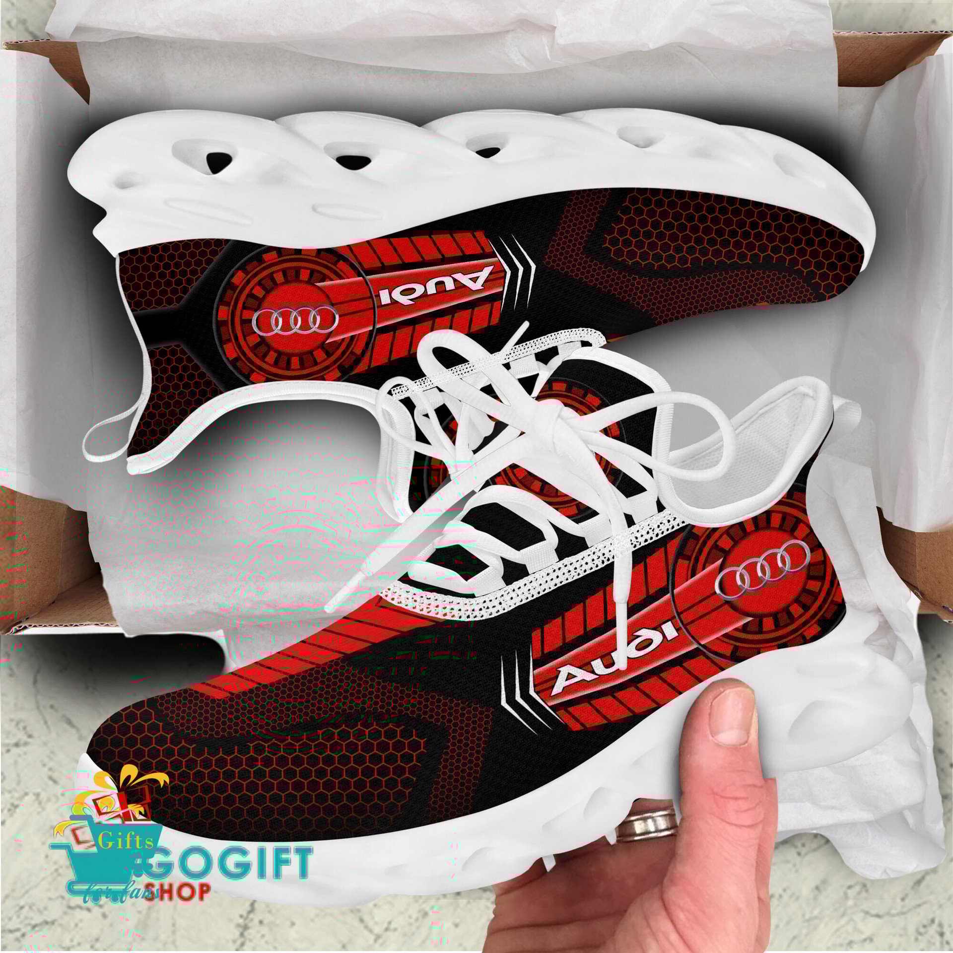 These shoes features crisp Audi graphics, designed for both men and women.