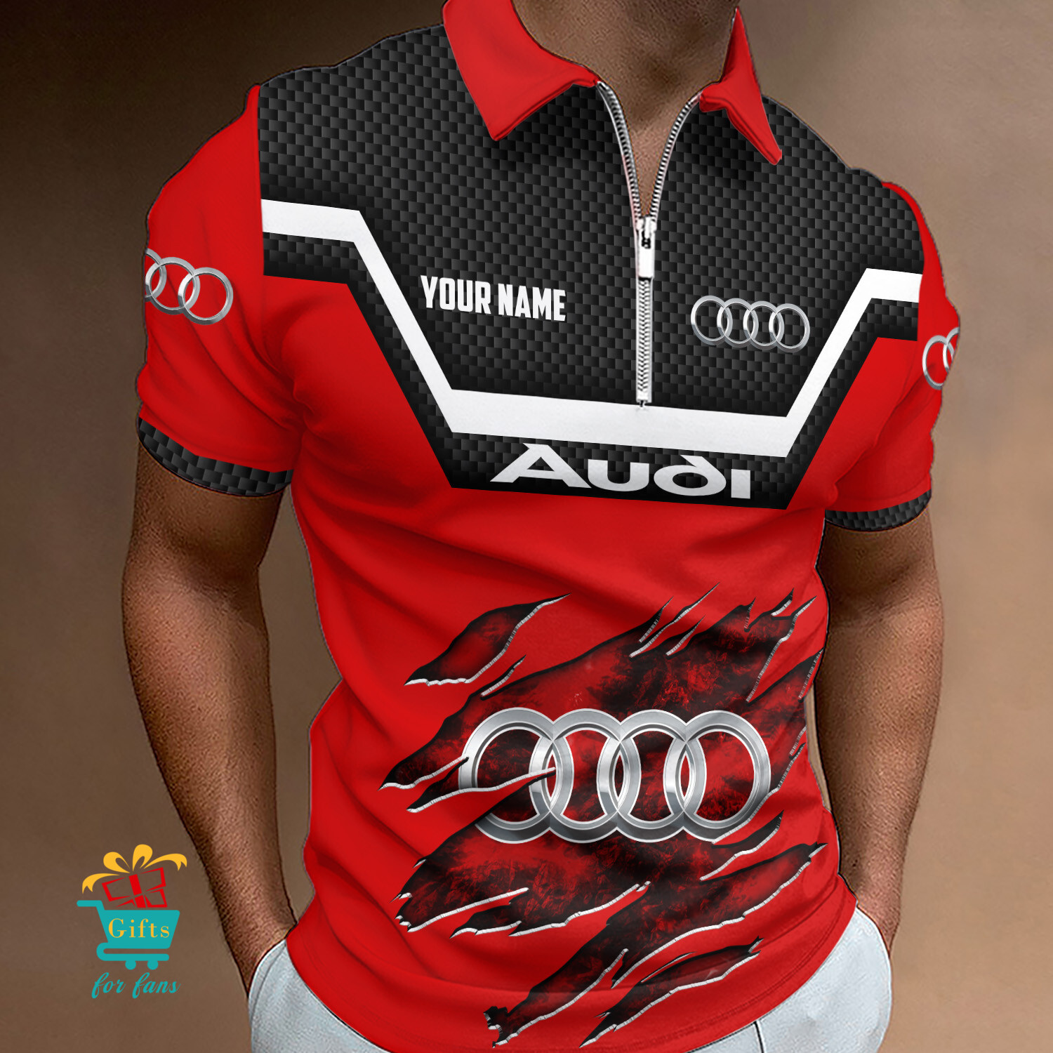 Audi Custom Name New Design Zipper Polo Shirt Product Features