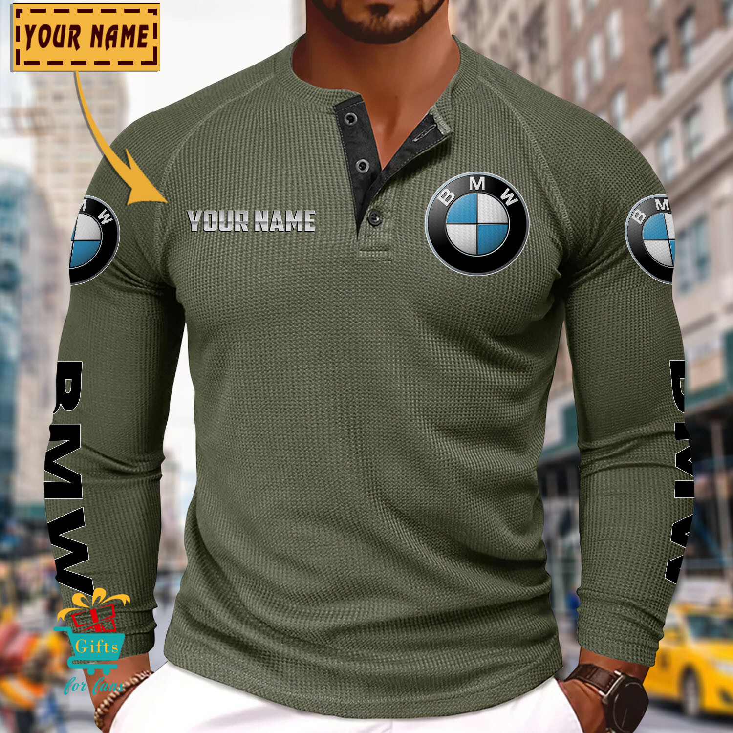 BMW Custom Name New Edition Henley Long Sleeve Shirt