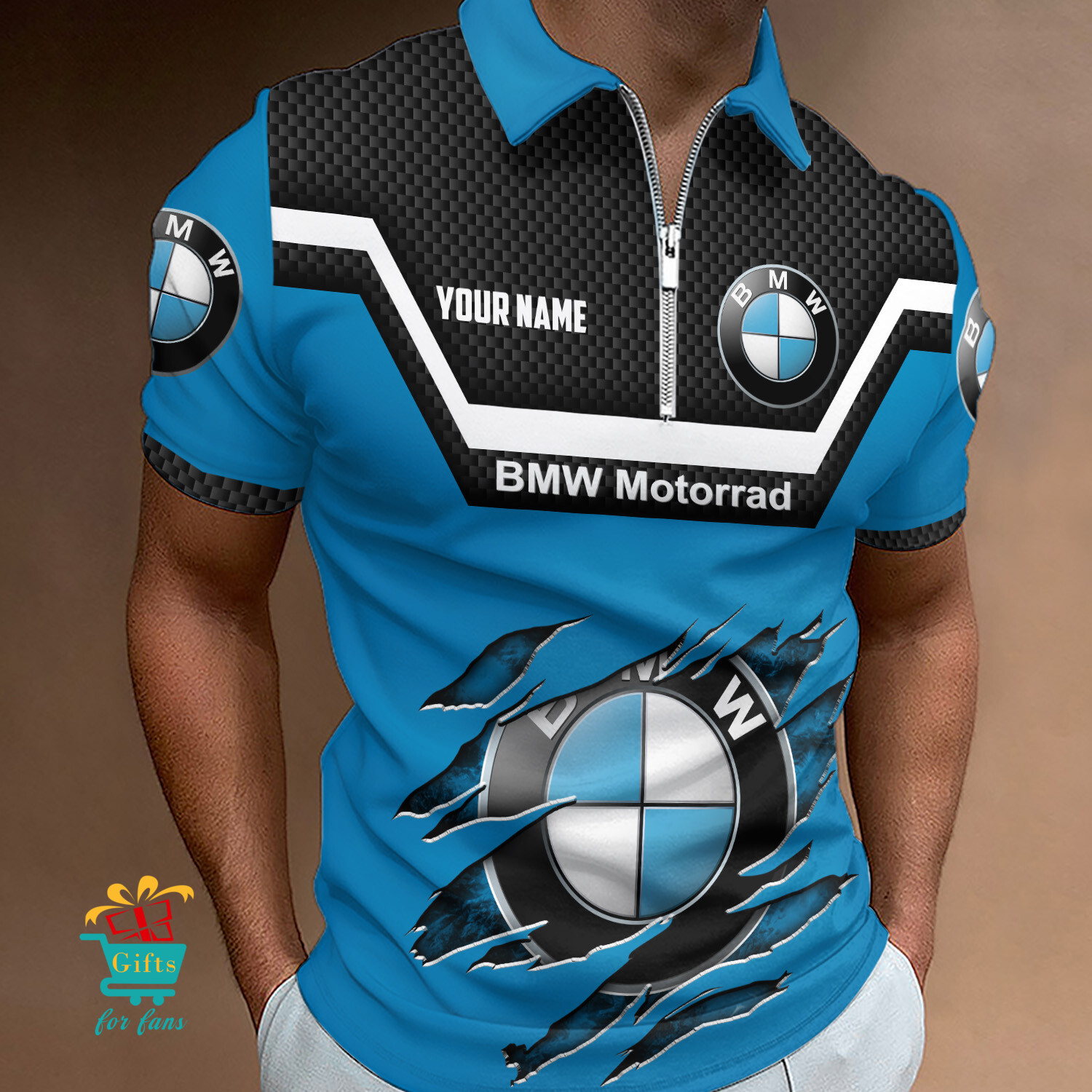BMW Motorrad Custom Name New Design Zipper Polo Shirt Product Features